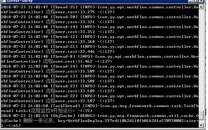 如下是在某台服务器上(应用数据库同台)测试,开启20个线程,处理20000个流程发起,每个线程处理1000,最长线程耗时33.6秒,最少耗时32.744秒