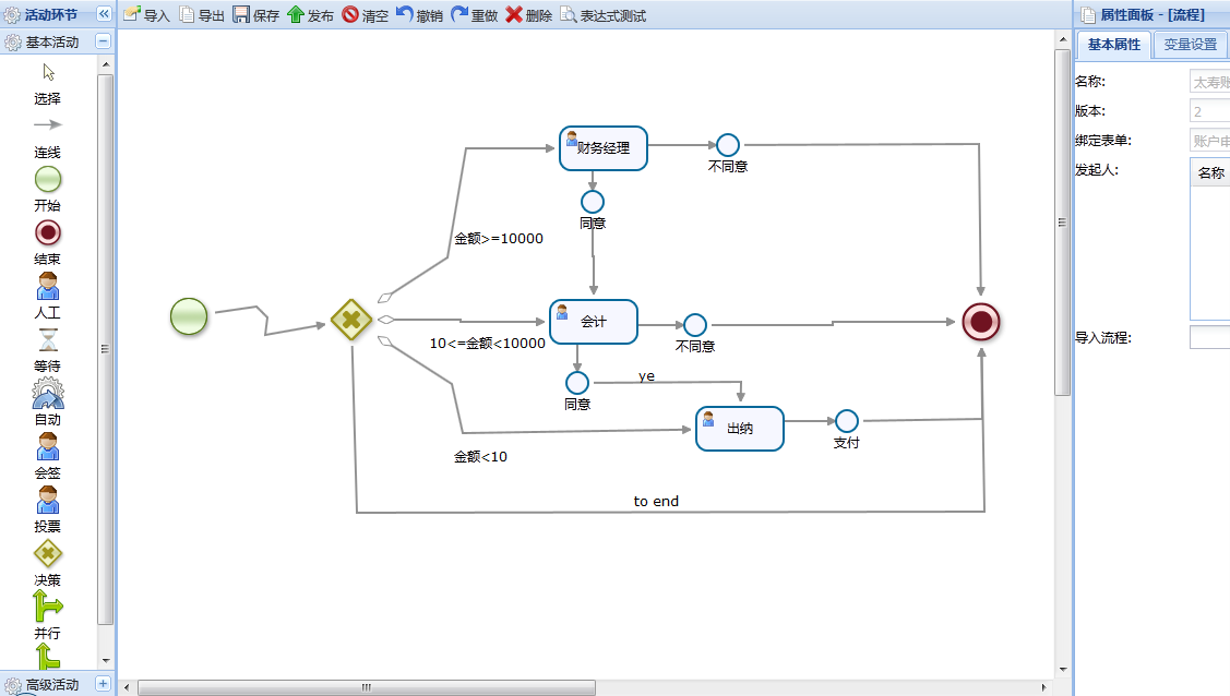 审批分配人员支持人员、角色、组织和表达式;其中表达式功能强大,可以编写java语言调用允许范围内的接口(等于可以调用java方法返回审批人)